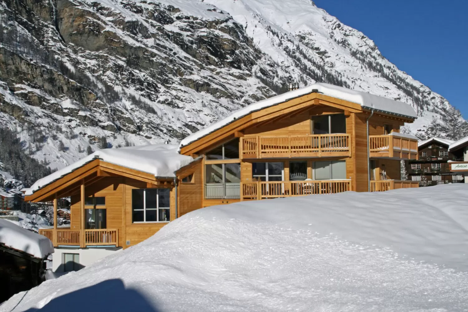 Upon your arrival in Zermatt, we recommend that you take one of the local electric taxis to reach the house Arctis. Due to the House Arctis’s unique location, you will be able to enjoy fantastic views of the Matterhorn.The local town bus stop is within a 3 minute walking distance and runs throughout the day. Zermatt’s famous mainstreet is located 10 minutes from the House Arctis and offers a wide a selection of shops and restaurants.